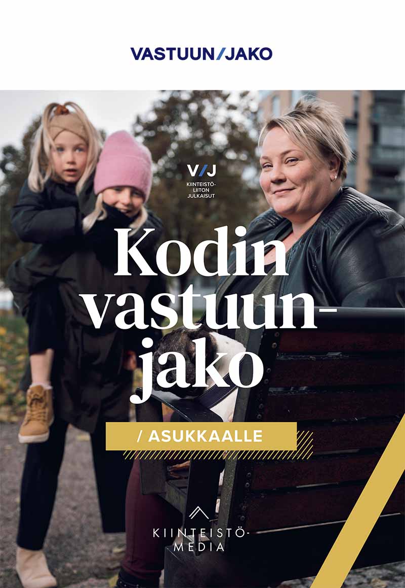 Kodin vastuunjako -opas selvittää ytimekkäästi osakkaan ja taloyhtiön tärkeimmät kunnossapitovastuut huoneistossa. Oppaan kuviin on merkitty osakkaan vastuut sinisellä ja yhtiön vastuut punaisella värillä. Lisäksi opas muistuttaa huoltotoimista, jotka osakkaan tulee itse huoneistossa tehdä.
